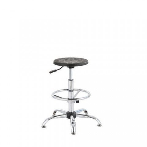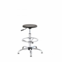 ESD otočná pracovní stolička s nastavitelnou opěrkou na nohy o průměru 450 mm. Nastavení výšky sedáku pomocí pneumatického pístu. Sedák z polyuretanu a podstavec z chromované oceli. Hmotnost židle je 11 kg.Antistatická ESD pracovní stolička Ned s kluzáky