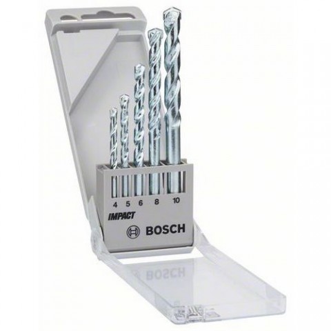 Standardní tvrdokov - Standardní životnost/odolnost. 2 břity - Standard. 2spirálový tvar U - Standardní životnost/ dobré odvádění vrtné moučky balení: 1 x BAL, 5ks v BAL celková délka: 75; 85; 100; 120; 120 mm pracovní délka: 40; 50; 60; 80; 80 mm o vrtáku: 4; 5; 6; 8; 10 mmBosch - 5dílná sada vrtáků do kamene CYL-1 4; 5; 6; 8; 10 mm