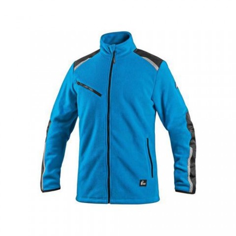Pánská fleecová bunda vyrobena z kombinace recyklovaných materiálů, které dávají nový život plastovým lahvím. Pro výrobu jednoho kusu bundy bylo využito 60 kusů PET lahví. Je vhodná do práce i na volnočasové aktivity. Bunda je vybavena náprsní kapsou na zip, bočními kapsami na zip, jemnou elastickou gumičkou v zápěstí a utahovací šňůrkou ve spodním lemu. Ramena a ergonomické lokty jsou vyztuženy odolným materiálem 600D polyester. Materiál je ošetřen protižmolkující úpravou. Reflexní doplňky zvyšují bezpečí v prostředí se sníženou viditelností. Velikost: 2XL-XL Reflexní doplňky: AnoBunda CXS 4ENVI SOLIS, pánská, fleecová, azurově modro-černá