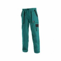 Zelené dámské montérky do pasu s černými doplňky. Velké přední a menší boční kapsy schovají telefon, metr a další drobné předměty potřebné k práci. Pohodlné nošení zajišťuje pevný pas se stahovací gumou a našitá poutka umožňují použít opasek. Zdvojená vyztužená partie kolen pomůže při častém klečení.Dámské montérkové kalhoty CXS, zelené/černé