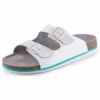 Dámské bílé zdravotní korkové nazouváky s anatomicky tvarovanou stélkou. Se dvěma nastavitelnými nártními pásky a rovnou podešví. velikost: 35 - 41 provedení: dámské materiál: svršek i stélka z hovězí semišové kůže, podešev EVA barva: bílá certifikace: EN ISO 20347 anatomicky tvarovaná stélkaDámské nazouváky CXS Cork Lisa, bílé