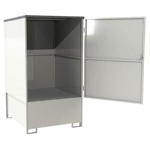 Depot s integrovanou záchytnou vanou. Záchytná vana je vyrobena ze svařované oceli. Jeho všestrannost umožňuje bezpečné uložení až 4 sudů (220 litrů) nebo IBC nádrže (1 000 litrů).Depot na sudy Manutan Expert, 220 l, 4 sudy
