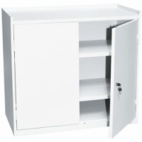 Skříně jsou konstruovány ze svařovaného plechu tloušťky 0,9 mm. Vnitřní vybavení tvoří dvě police. Dílenské skříně je možno uzamknout pomocí cylindrického rozvorového zámku. Materiál skříně je ocel.Dílenské skříně na nářadí Manutan Expert, 91,5 x 100 x 50 cm