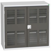 Kovové dílenské skříně s drátěnými dveřmi pro dobrou ventilaci i přehlednost obsahu. Pozinkované police s nosností 75 kg jsou výškově nastavitelné v rastru 25 mm. Svařovaná ocelová konstrukce, povrchová úprava práškovým lakem. Zamykání tříbodovým cylindrickým rozvorovým zámkem.Dílenské skříně policové s drátěnými dveřmi Bott Verso, výška 100 cm