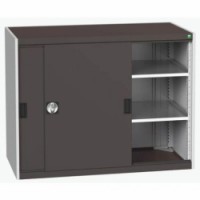 Kovové dílenské skříně s posuvnými dveřmi jsou vhodné do míst s omezeným prostorem. Posuvné dveře včetně madel a zámku. Pozinkované police s nosností 100kg, výškově nastavitelné v rastru 25 mm. Svařovaná ocelová konstrukce, povrchová úprava práškovým lakem.Dílenské skříně s posuvnými dveřmi Bott Cubio, výška 100 cm