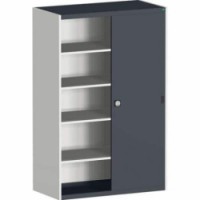 Kovové dílenské skříně s posuvnými dveřmi jsou vhodné do míst s omezeným prostorem. Posuvné dveře včetně madel a zámku. Pozinkované police s nosností 100kg, výškově nastavitelné v rastru 25 mm. Svařovaná ocelová konstrukce, povrchová úprava práškovým lakem.Dílenské skříně s posuvnými dveřmi Bott Cubio, výška 200 cm