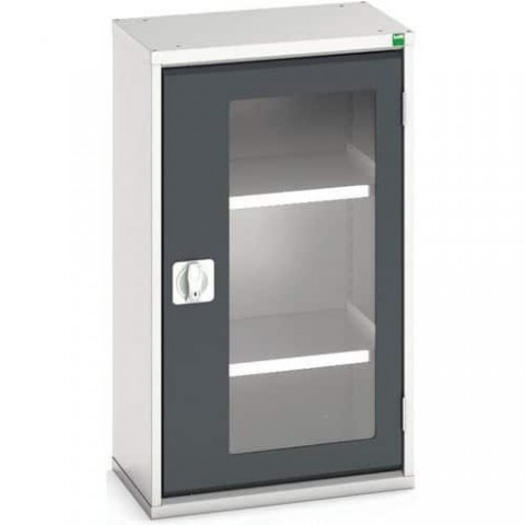 Kovové dílenské skříně s průhlednými plexi dveřmi pro snadnou kontrolu obsahu. Pozinkované police s nosností 75 kg, výškově nastavitelné v rastru 25 mm. Svařovaná ocelová konstrukce, povrchová úprava práškovým lakem. Uzamykání tříbodovým cylindrickým rozvorovým zámkem se dvěma klíči.Dílenské skříně s průhlednými dveřmi Bott Verso, výška 90 cm