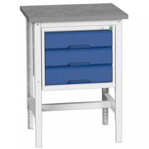 Dílenské stoly Bott Verso se zásuvkami, šířka 70 cm, výškově nastavitelné, multiplex/linoleum