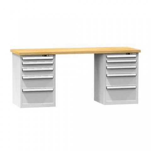Pracovní stoly KOMBI jsou nejžádanější sestavy stolů kombinovaných ze stavebnicových nábytkových dílů. Pracovní stoly nabízíme v předdefinovaních sestavách pro každý typ v několika šířkách i hloubkách. KOMBI stoly se sestavují z pracovní desky, nohy pracovního stolu (nabízíme několik variant) nebo zásuvkové skříně, které mohou být na obou stranách stolu. Nohy je možné opatřit kolečky nebo elektro vybavením. Pracovní prostor mnohonásobně rozšíříte díky nástavbě pracovního stolu a širokému příslušenství.Dílenské stoly KOMBI OB4725, 2500 x 700 x 880 mm, BUK