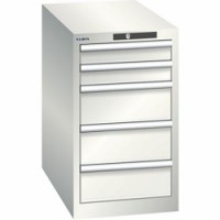Dílenské zásuvkové skříňe Lista, 3 nebo 5 zásuvek.Zámek na klíč. Optimální využití díky plnému výsuvu a optimální výšce čela zásuvek. Vynikající ochrana proti prachu, kapalinám a mechanickému opotřebení díky uzavřenému rámu s povrchem odolným proti nárazům a oděru. Systém proti převrátcení, který zabraňuje pádu zásuvky, a individuální zamykání zásuvek. Ochrana proti korozi elektroforetickým imerzním lakováním a stříkáním. Optimalizované úložné prostory a organizace díky dělicímu materiálu LISTA přizpůsobenému každému použití a zásuvkám vybaveným drážkami a perforacemi. Profesionální popisování s popisovacím softwarem LISTA Script a výklopnou úchytkou pro vkládání štítků. Dokonale tichý pohyb díky saně bez příčníku.Dílenské zásuvkové skříně Lista, 3 nebo 5 zásuvek, 411x725x700 mm