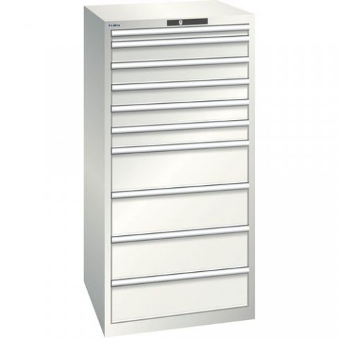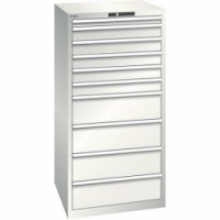 Ochrana proti prachu, kapalinám díky uzavřenému rámu s povrchem odolným proti nárazům a oděru. Bezpečnostní pojistka zabraňující pádu a individuálnímu zamykaní zásuvek (ochrana proti převrácení). Ochrana proti korozi pomocí elektroforetického imerzního lakování a stříkání. Profesionální označování pomocí softwaru pro označování LISTA Script a výklopné úchytky pro vkládání štítků. Dokonale tichý pohyb díky saně bez příčníku.Dílenské zásuvkové skříně LISTA, 717x725x1450mm, 9 nebo 10 zásuvek, nosnost zásuvky 75 nebo 200kg
