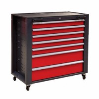 Dílenský svařovaný vozík je vyrobený z ocelového plechu tl. 0,7 - 2 mm. Vybavený 7 zásuvkami se 100% výsuvem na kuličkových lištách. Zásuvky jsou opatřené kovovými lištami s funkcí blokování proti samovolnému otevření. Centrální uzamykání všech zásuvek cylindrickým zámkem. Nosnost jedné zásuvky je 40 kg, celková nosnost vozíku je 160 kg. Pojízdnost zajišťují 4 otočná kolečka s brzdou o průměru 75 mm. Povrchová úprava polyesterovým vypalovaným lakem RAL 7016 a 3000.Dílenský vozík na nářadí Light s předními madly, 7 zásuvek