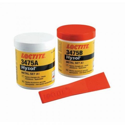 Vhodné k utěsňování prasklin. Epoxidová pryskyřice s obsahem kovu. Odolnost proti korozi. Velmi odolné víceúčelové lepidlo.Dvousložkové epoxidové lepidlo plněné kovem Loctite 3475, 500 g