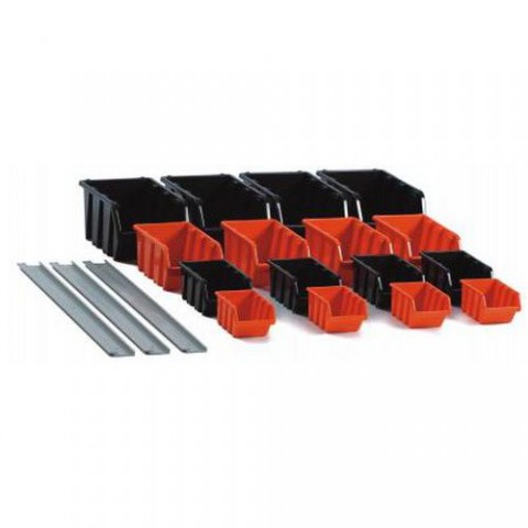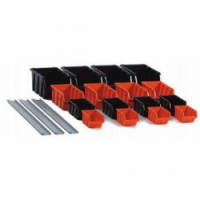 Sada obsahuje nádobky různých rozměrů a 3 lišty umožňující upevnění na stěnu. Sadu využijete jak doma, tak v dílně nebo na prodejně. Její přednosti oceníte všude tam, kde je potřeba udržovat pořádek a přehled ve skladovaném sortimentu.Ekobox plastový 16 ks, se závěsnou, plastovou lištou 3 ks