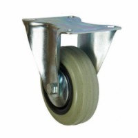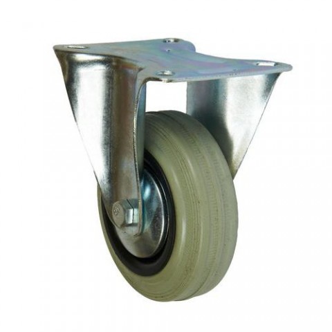 Transportní kola se světle šedou nešpinivou pryžovou obručí. Kryt proti namotávání vláken. typ kol: pevná materiál kol: guma průměr kola: 100 - 125 mm šířka kola: 35 mm nosnost: 100 - 125 kg způsob uchycení: vidlice s přírubou výška kola s vidlicí: 130 - 158 mm ložiska: kluzná kryt proti namotávání vláken, povrchová úprava pozinkováním, teplotní odolnost -10 až +60 °CGumová transportní kola s přírubou, průměr 100 - 125 mm, kluzná ložiska