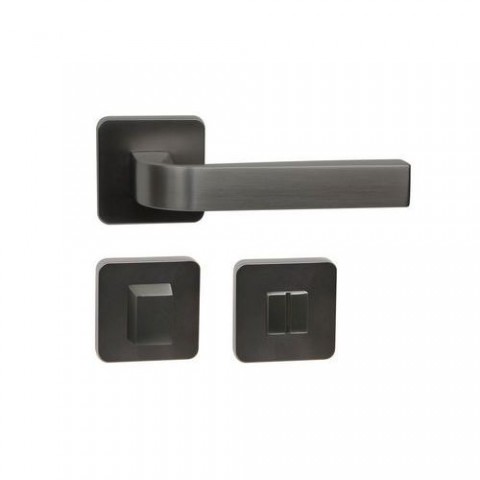 Zamakové kování na čtvercových rozetách s vratnou pružinou klik. Použitý materiál vykazuje vysokou pevnost a odolnost povrchu proti opotřebení. Přesné opracování hran.Interiérová kování Roma.WC