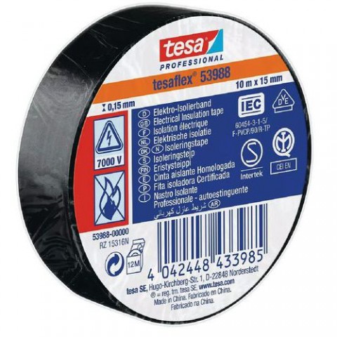 Tesaflex 53988 izolační páska pro izolaci a značení kabelů. Vyznačuje se velkou pružností a velmi dobrou přilnavostí (i na oceli a při nízkých teplotách). Vhodné pro izolaci a značení kabelů, ale také pro opravy a páskování.. Páska Tesaflex 53988 je certifikována v souladu se všemi současnými normami. Jednoduché a snadné použití.Izolační páska Tesa, 15 x 0,15 mm, délka 10 m