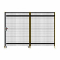 Kompletní jednokřídlé posuvné dveře s cylindrickým zámkem pro systém ochranného oplocení. Cylindrický zámek na klíč umožňuje vstup pouze oprávněným osobám. Teleskopické vedení umožnuje použití dveří s minimálním nárokem na prostor. Bezpečnostní oplocení slouží k zajištění bezpečnosti zaměstnanců a návštěvníků tím, že omezuje přístup do nebezpečných nebo citlivých prostor. Chrání před neoprávněným přístupem osob ke strojům a zařízením, vandalismem a krádežemi. Systém oplocení je navržen a vyroben v souladu s normou EN ISO 14120 a splňuje bezpečnostní požadavky hodnocení rizik.Jednokřídlé posuvné dveře s teleskopickým vedením, cylindrický zámek