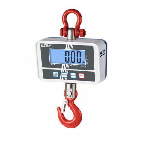 Jeřábové váhy Kern HCD s funkcí Hold: v případě přerušení vážení, zobrazení hmotnosti automaticky zamrzne, dokud není stisknuto tlačítko HOLD. Displej úrovně nabití baterie, optická LED. Velký, vysoce kontrastní LCD displej pro snadné čtení. Funkce Stand-by: automatické vypnutí displeje po 5 minutách bez změny zátěže. Automatická aktivace stisknutím libovolné klávesy. Háček s bezpečnostní pojistkou, který lze otáčet. Infračervené dálkové ovládání jako standard, dosah až 20 m.Jeřábové váhy Kern HCD