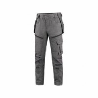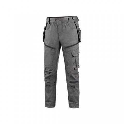 Pánské pracovní kalhoty moderního střihu slim-fit. Kombinace kvalitního směsového materiálu s elastanem a 4-way stretch materiálu v exponovaných místech umožňuje volný a pohodlný pohyb. Vybavení kalhot: flexibilní pas s možností upravení velikosti a poutky na opasek, na vnitřní straně pasu protiskluzový potisk, 2 přední kapsy, 2 odnímatelné kapsy na nářadí vyztuženy materiálem CORDURA®, stehenní zipové kapsy s možností ventilace, boční kapsa se zipovou kapsou, 2 zadní kapsy (jedna zipová) vyztuženy materiálem CORDURA®, kapsa na skládací metr s dalšími přihrádkami, ergonomicky tvarovaná kolena zesílena materiálem CORDURA® s možností vložení kolenních výztuh bočním vkládáním a ventilací, kapsa na ID kartu, spodní část nohavic vyztužena materiálem CORDURA®, reflexní doplňky. Kalhoty jsou vybaveny EASY-PROLONG systémem, který umožňuje snadné prodloužení střihu na vyšší postavu uvolněním švu na nohavicích. Doporučené použití: strojírenství, stavebnictví, lehký průmysl, automobilový průmysl,Kalhoty CXS LEONIS, pánské, šedé s černými doplňky
