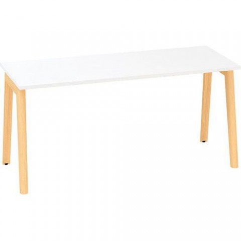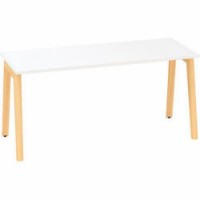 Moderní kancelářské stoly s dřevěným podnožím. Podnoží vyrobené z masivního dřeva jasanu se zápustnými maticemi, z tohoto důvodu se kresba a odstín dřeviny mohou lišit. Kovové části podnoží jsou ošetřené práškovou epoxy-polyesterovou bílou barvou RAL 9010. Stolová deska z laminované dřevotřísky s tloušťkou 25 mm a ABS hranami 2 mm. Možný výběr desky z dezénu buk nebo bílá. Dodáváno ve demontovaném stavu.Kancelářské stoly Alfa Root, 160 x 80 x 74,2 cm