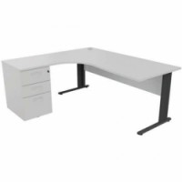 Ergonomické stoly se základnami v antracitové barvě a ve tvaru L. Možnost výběru z pravého či levého provedení. Vrchní část s antireflexní povrchovou úpravou. Součástí desky stolu je průchodka pro vedení kabelů. Kontejner se třemi zásuvkami je dodáván se dvěma klíči.Kancelářské stoly s kontejnerem Manutan Expert, 72 x 160 - 180 x 160 cm, pravé/levé provedení, světle šedá