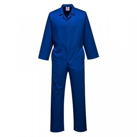 Zádový sklad Skryté přední zapínání na druky Vnitřní náprsní kapsa Kapsa na tužku Boční kapsy 3 kapsy Odolná tkanina Pas buggyKombinéza potravinářská, světle modrá