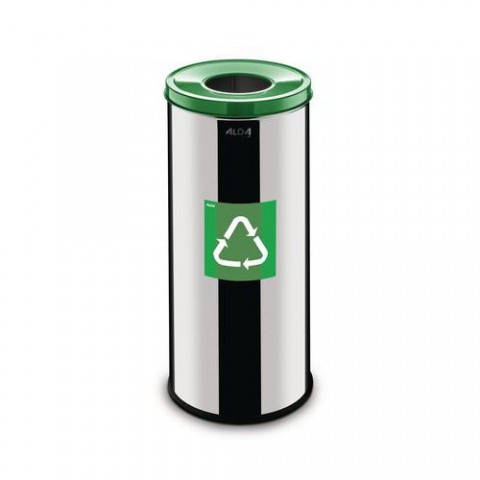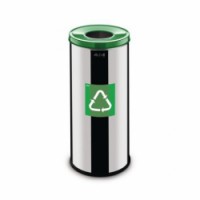 Kovové odpadkové koše Prestige EKO na tříděný odpad jsou vyrobeny z lesklé nerezové oceli. Víka v různých barvách s povrchovou úpravou práškovým lakem (žlutá RAL 1023, modrá RAL 5002, černá RAL 9005, zelená RAL 6005). Součástí košů je piktogram v barvě víka. Protiskluzová gumová základna zlepšuje stabilitu koše a chrání podlahu před poškozením. Možnost spojení košů. Uchycení pro držák na odpadkové pytle.Kovové odpadkové koše Prestige EKO na tříděný odpad, objem 45 l