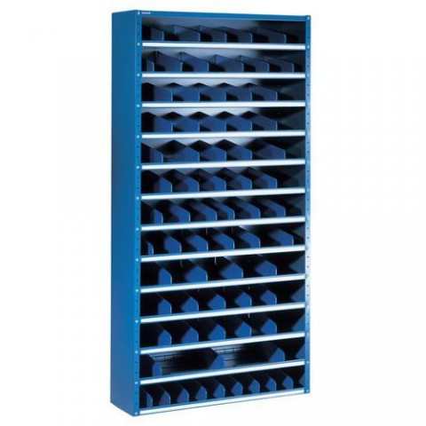 Kovové regály s dvanácti policemi jsou ideálním řešením pro ukládání drobného zboží ve skladech či dílnách. Součástí jsou plastové děliče, které lze přemisťovat po 50 mm a police stavitelné v rastru 30 mm.Kovové regály s děliči, 198x100x20-40 cm, 12 polic - Manutan Expert
