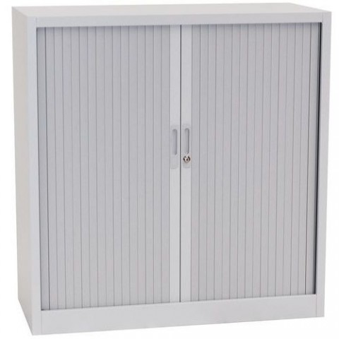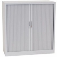 Skříně se dvěma stavitelnými policemi a plastovými roletami, které lze plně zasunout do stran. Možnost uzamčení cylindrickým zámkem.Kovové spisové skříně s roletou, 2 police, 105 x 100 x 45,7 cm