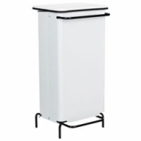 Ocelové víko a tělo s epoxidovým práškovým nátěrem. Odnímatelná přední část usnadňující vyjmutí pytle na odpadky. Přední část se uzavírá a drží na místě pomocí elastického pásku. Široký pedál pro použití v souladu s doporučeními HACCP. Statická základna na čtyřech nohách.Kovový odpadkový koš Manutan Expert s víkem, objem 110 l, bílý