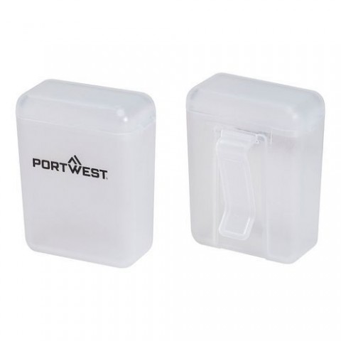 Praktický plastový zásobník na 1 pár zátkových chráničů sluchu, vyrobený z průhledného plastu a opatřený praktickou sponou na opasek. Průhledné plastové pouzdro se zabudovanou sponou na opasek pro snadné přenášení Horní otvor určený pro bezpečné dávkování zátkových chráničů sluchu Chrání zátkové chrániče sluchu díky bezpečnému uložení Nový vzhledKrabička na zátkové chrániče sluchu (balení 50 ks)