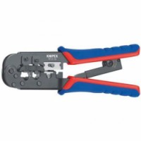Mimořádně vysoká kvalita krimpování díky integrovanému zámku (samouvolňovacímu). Se štípačkou a odizolovačem pro ploché kabely (6 a 12 mm). Dodává se s přídavným kulatým odizolovačem kabelů. Speciální, v oleji kalená chrom-vanadiová elektrická ocel.Krimpovací kleště Knipex pro konektory Western