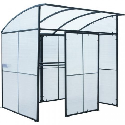 Krytý přístřešek je vhodný jako kuřárna nebo čekárna. Kovový rám je odolný a stabilní proti špatnému počasí. Přístřešek je primárně volně stojící, lze jej připevnit k podkladu šrouby (nejsou součástí balení).Krytý přístřešek Manutan Expert