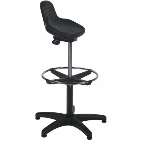 Zvýšená laboratorní otočná stolička se synchronní mechanikou vhodná pro laboratorní nebo dílenské použití. Synchronní mechanika zajišťuje neustálý kontakt opěradla se zády. Laboratorní sedátko je složeno ze snadno omyvatelné PUR pěny. Pro větší pohodlí uživatele má tato laboratorní židle výškově stavitelnou celoobvodovou opěrku nohou. Ovládání výšky sedáku pomocí plynového pístu. barva sedáku: černá barva konstrukce: černá materiál sedáku: polyuretanová pěna materiál kříže: plast materiál područek: - mechanika: synchronní nosnost: 110 kg rozměry v x š x h: 90 x 60 x 60 cm rozměry sedáku š x h: 34 x 37 cm výška sedáku: 58 - 83 cm opěrka nohou: ano typ opěrky nohou: výškově nastavitelné hmotnost: 9 kg dodáváno v rozloženém stavu, plynový pístLaboratorní stolička Manutan Expert Tess