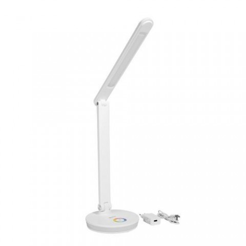 Stmívatelné LED stolní lampy Platinet zaujmou nejen svým moderním designem, ale i funkčností. Díky nastavitelnému rameni a možnosti stmívání si snadno přizpůsobíte světelné podmínky přesně podle svých potřeb. Zajímavým designovým prvkem je RGB podsvícení základny, které umožňuje nastavit barevnou atmosféru podle nálady nebo denní doby. Možnost nechat svítit jen základnu lampičky jemným světlem volitelné barvy např. během večerních hodin, kdy nepotřebujete intenzivní osvětlení. Integrovaný USB port umožňuje pohodlné nabíjení mobilního telefonu nebo tabletu. Konstrukce lampy je flexibilní, s ramenem dlouhým 33 cm a výškou 40 cm. Základna o průměru 16,5 cm zajišťuje pevné umístění na pracovním stole. Napájení je řešeno pomocí kabelu o délce 100 cm. Dostupné v černé i v bílé variantě.LED stolní lampy Platinet 12W, USB port