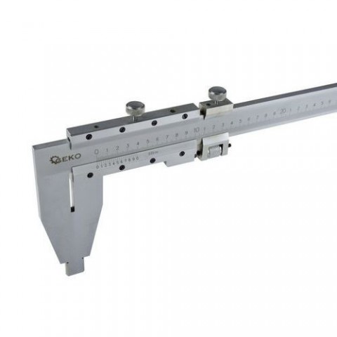 Posuvné měřítko s měřící délkou 1000 mm, vybavené knoflíkem a jezdcem pro přesné nastavení. Dokonale funguje v průmyslu, při obrábění kovů, dřeva atd. Tlumiče zabalené v dřevěném kufru. Typ: neiontový. Odrůda: jednostranná. Celková délka nástroje: 1233 mm. Rozsah měření: 0 - 1000 mm. Délka čelistí: 126 mm. Přesnost: 0,05 mm. Měřící jednotka: cm. Hloubkoměr: není. Typ zámku: Pomocný posuvník. Materiál: vyztužená ocel.Měřítko posuvné kovové, 0-1000mm x 0,05 GEKO