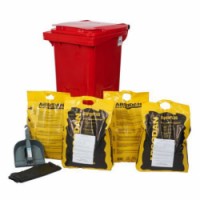 Mobilní plastová popelnice (120 l) obsahuje sadu sypkých sorbentů s příslušenstvím pro rychlou likvidaci všech druhů kapalin. Popelnice je odolná vůči chemikáliím a UV záření. Vhodná zejména do dílen, čerpacích stanic, parkovišť a provozů, kde se používají ekologicky nebezpečné kapaliny.Mobilní havarijní souprava Absodan, univerzální, sorpční kapacita 42 l