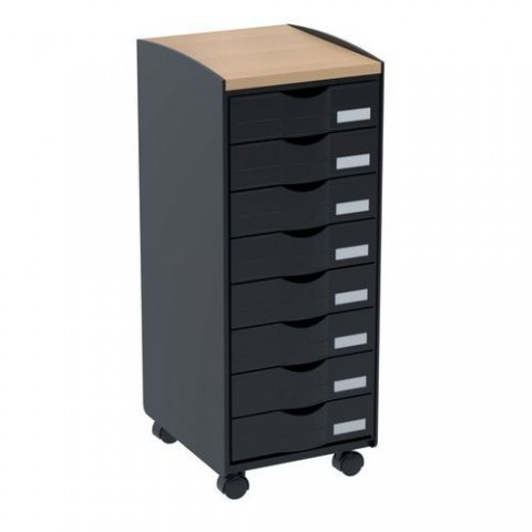Pojízdné zásuvkové skříně s 8 zásuvkami. Horní deska s nárazuvzdornou ABS hranou. Vybaveny 4 otočnými kolečky. Nosnost až 3 kg na zásuvku.Mobilní zásuvkové skříně Paperflow, 8 zásuvek