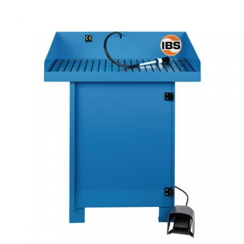 Kovový stůl na mytí drobných dílů a součástek od olejů, vazelín a k odmašťování před povrchovou úpravou. Průmyslové provedení s uzavíratelnou skříňkou, nosnost až 150 kg. Sešlápnutím nožního spínače se čerpadlo uvede do provozu a během mytí znečištěných dílů stéká použitá kapalina zpátky do sudu, kde se špína samostatně odděluje a usazuje na dně sudu. Hrdlo čerpadla sahá pouze do poloviny sudu, což zaručuje práci pouze s čistou kapalinou. Použití je možné pouze s mycími kapalinami IBS, které je nutné dokoupit zvlášť. Respektuje zákony a směrnice EU.Mycí stůl IBS, typ G-50-I