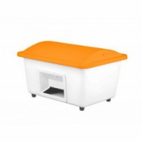 Stohovatelné kontejnery ze sklolaminátu k uskladnění posypového materiálu např. štěrku, písku nebo soli. Vzimním období účelně slouží na frekventovaných a rizikových úsecích silnic nebo chodníků u škol, obchodních center, zastávek a podobně. Odolné povětrnostním vlivům, posprejování a jinému vandalismu. Panty z nerezové oceli, ostatní díly z pozinkované oceli. Ukotvení k zemi proti krádeži a možnost stohování. Teplotní odolnost od -40 do +40 °C.Nádoby na zimní posyp, 1 100 l