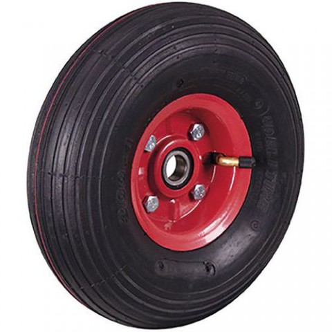 Pneumatika o průměru 260 mm na červeném ocelovém ráfku 1,8 mm s kuličkovými ložisky. Lehký a tichý chod, hluboké drážky. Otvor 20 mm, délka náboje 14 mm.Nafukovací pojezdové kolo, 260 x 85 mm, kuličková ložiska