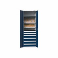 NC skříně jsou opatřeny dvojitými stěnami s perforací pro zavěšení polic, nosičů, nástrojových rámů a zásuvek. V případě vybavení skříne zásuvkami je standardně, z důvodu bezpečnosti (nebezpečí převrácení), dodávána blokace proti vysunutí více zásuvek. Korpus skříně se uzavírá křídlovými dveřmi s panty otočnými o 180°. Zamykání cylindrickým rozvorovým zámkem. Standardní výbavou je systém identifikace otvorů a popisový štítek s funkcí chytrý nábytek. Do skříní je možné zavěšovat zásuvky s půdorysem ZD (36x27).NC skříně s křídlovými dveřmi 36x27D s vybavením, var. 12