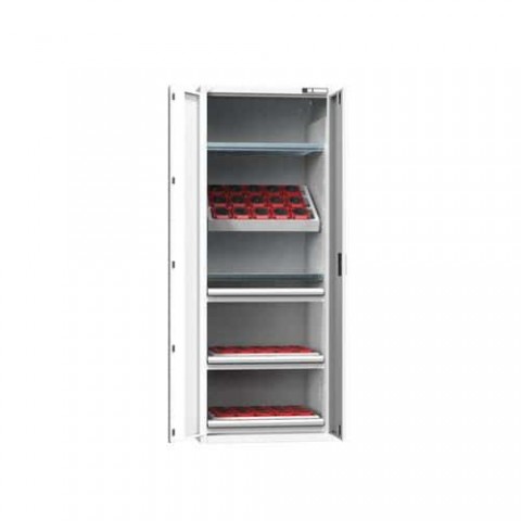 NC skříně jsou opatřeny dvojitými stěnami s perforací pro zavěšení polic, nosičů, nástrojových rámů a zásuvek. V případě vybavení skříne zásuvkami je standardně, z důvodu bezpečnosti (nebezpečí převrácení), dodávána blokace proti vysunutí více zásuvek. Korpus skříně se uzavírá křídlovými dveřmi s panty otočnými o 180°. Zamykání cylindrickým rozvorovým zámkem. Standardní výbavou je systém identifikace otvorů a popisový štítek s funkcí chytrý nábytek. Do skříní je možné zavěšovat zásuvky s půdorysem ZD (36x27).NC skříně s křídlovými dveřmi 36x27D s vybavením, var. 8