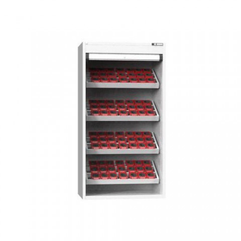 NC skříně jsou opatřeny dvojitými stěnami s perforací pro zavěšení polic, nosičů, nástrojových rámů a zásuvek. V případě vybavení skříne zásuvkami je standardně, z důvodu bezpečnosti (nebezpečí převrácení), dodávána blokace proti vysunutí více zásuvek. Korpus skříně se uzavírá hliníkovou roletou světle šedé barvy RAL 7035 s rozvorovým zámkem. Standardní výbavou je systém identifikace otvorů a popisový štítek s funkcí chytrý nábytek. Do skříní je možné zavěšovat zásuvky s půdorysem ZC (54x27).NC skříně s roletou 54x27D s vybavením, var. 3