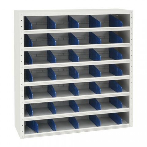 Nízké regály s děliči a s šesti policemi vhodné pro ukládání drobného zboží. Police jsou opatřené 3cm okrajem, možnost značení zboží pomocí lišty po celé délce polic. Děliče je možné umisťovat v rastru 5 cm. Povrchová úprava práškovým lakem.Nízké kovové regály s děliči Manutan Expert, 108 x 100 x 20 - 30 cm, 6 polic, světle šedé