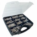 Odolné nerezové nýty jsou vyrobeny z?Inoxu A2, ideální pro použití ve vlhkém prostředí a pro zvýšenou odolnost proti korozi. Sada obsahuje standardní nýty GORIVET Inox a “clou” Inox, perfektně pokryje běžné potřeby montáže a opravy. Různé typy hlav: Kombinace standardní kulaté hlavy (TRS) a extra široké hlavy (TEL). Snadné skladování a transport díky praktickému kufříku, který je vhodný pro údržbu či servisní zásahy v agresivních nebo vlhkých podmínkách.Sada nerezových nýtů Dogometal
