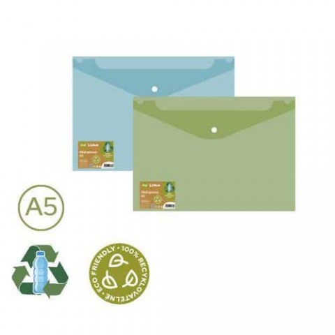Spisové obaly s klopou a zapínáním na druk v různých velikostech (A4, A5, DL). Vhodné pro nošení a úschovu dokumentů. Tloušťka: 250 mic. Rozměr: 33 x 23,5 cm (formát A4), 17 x 24 cm (formát A5), 13 x 25,5 cm (formát DL). Certfikace Global recycled standard.Obaly spisové s klopou a drukem ECO LUMA mix, 6 ks