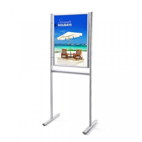 Oboustranné informační stojany s rámem na plakáty. Ve spodní části se nachází prostor pro umístění plechové kapsy na brožury, katalogy a jiné prospekty. Klaprám s ostrými rohy a profilem 25 mm.Oboustranné reklamní stojany Infoboard, profil 25 mm
