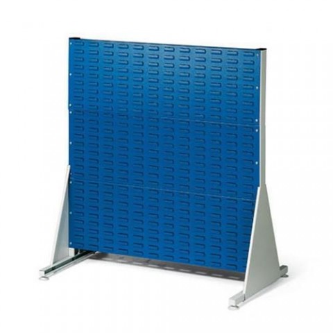 Oboustranný stacionární regál tvoří kombinace nosných vertikálních prvků a děrovaných výplní upevněných na kovových nožkách. K dispozici ve dvou barevných variantách.Oboustranný PERFO regál, výška 112 cm